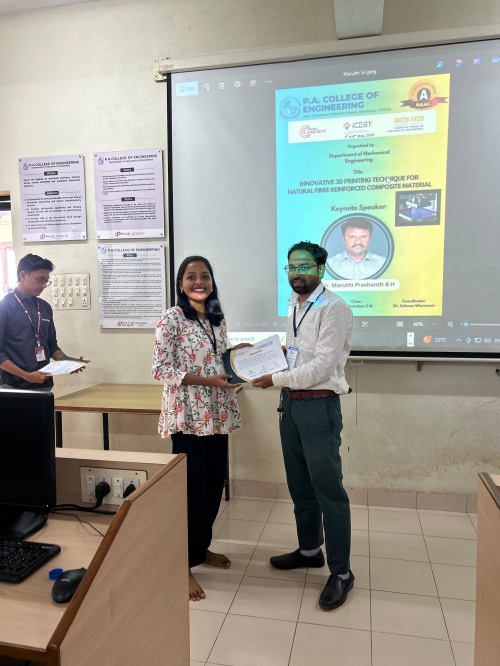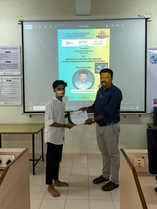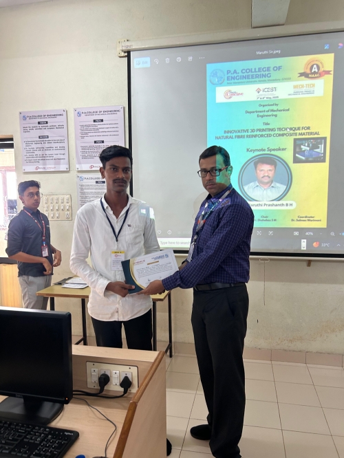 An invited talk on “Entrepreneurial Opportunities in Mechanical Engineering” by Mr. Sufiyan Ahmed U K, Founder and Managing Director, ‘The Mechanic’ and ‘Oxyline Technologies’, Uppala, Kasargod (PACE Alumnus), was organized on 10th December 2022. The talk focused on the different areas in which a mechanical engineer can become a successful entrepreneur, and stressed the need of time-sense, patience, punctuality, hardworking and communication skills & a positive attitude along with technical proficiency to become a successful entrepreneur.