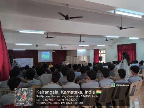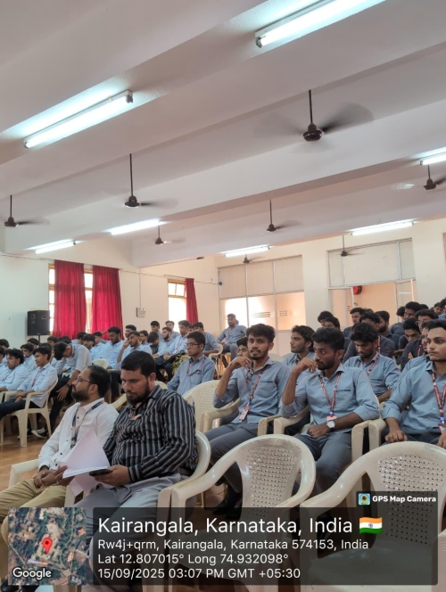 A technical talk on ‘Exploring the Career Paths in Mechanical Engineering Using Design and Analysis Tools’ by Mr. Rashwin and Mr. Prajwal, the officials from the CADD Centre, Bendorwell, Mangalore, was organized on December 13, 2023. They briefed about the Mechanical CAD softwares such as AutoCAD 2D, CATIA, SolidWorks, NX CAD, CREO, Fusion 360, Inventor, Ansys WB, Ansys Fluent, Revit MEP, PDMS & Hypermesh and also the Project Management Tools such as PPM concept, Microsoft Project, Primavera and SAP. The session emphasized the vital role played by the design and analysis softwares in mechanical engineering and enlightened the participants in finding their career growth using these softwares.