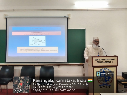 An expert talk on "Navigating the Path to Mechanical Excellence" by Mr. James M.V, Managing Director, Geo Technical Enterprise Pvt Ltd, Bangalore, was organized on December 13, 2023. This event aimed to provide Mechanical Engineering students with industry-relevant insights, enriching their understanding of the journey towards mechanical excellence and bridging the gap between academia and industry.