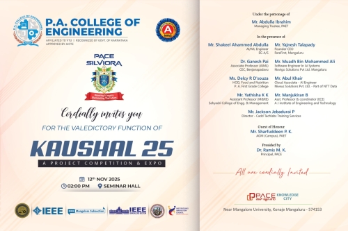 An invited talk on "Decoding Success, Navigation to Civil Service Exams" by Mr. Muhammad Safeer U A and Mr. Syed Zeeshan, notable alumni of PACE, was organized on 22nd Feb 2024. Mr. Safeer emphasized the significance of participating in civil service and other entrance examinations, while Mr. Zeeshan provided guidance on the application process and other procedures required to take these exams.