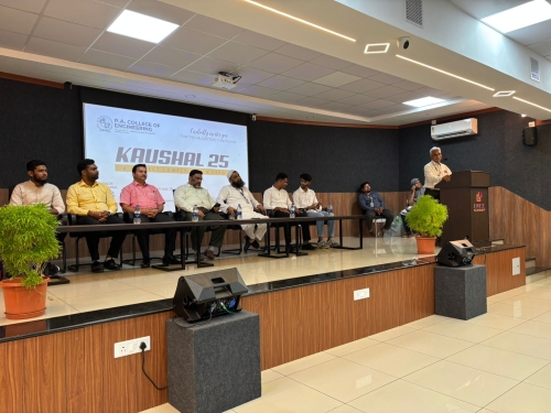 On February 23rd, Mr. Mithun from the Petrocon Institute of Piping Engineering, Mangalore was invited to P.A. College of Engineering, Mangalore to deliver a lecture on “Opportunities in Piping Industries” which was organized by the Mechanical Engineering Association (MEA) in the Multi-Purpose Hall. The audience were final year Mechanical Engineering Students.The program started with an initial address of Dr Ramis M K, who emphasized on the need of acquiring a skill in any of the industry oriented domains during their course, which will help the students to place themselves by the time they are out. During the seminar, Mr. Mithun threw a limelight on various aspects of piping courses offered by the Petrocon Institute of Piping Engineering and the opportunities that are available in piping industries after completion of the course. Side by side he gave a brief introduction on how the softwares and training manuals are exercised during the period of training. Some of them included applying parameters as per rules and regulations given by certain institutions like ASME & ASTM, development of piping layout, development of GA Drawings, Piping isometrics etc. The lecture turned out to be very beneficial to the students present over there, many of whom decided to malign their interests in this section of engineering.
