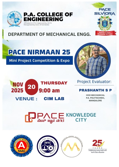 A very warm welcome to the website of the Department of Mechanical Engineering, P.A. College of Engineering. The discipline of Mechanical Engineering has a long and distinguished history of developing state-of-the-art technologies and exhilarating solutions for mankind.