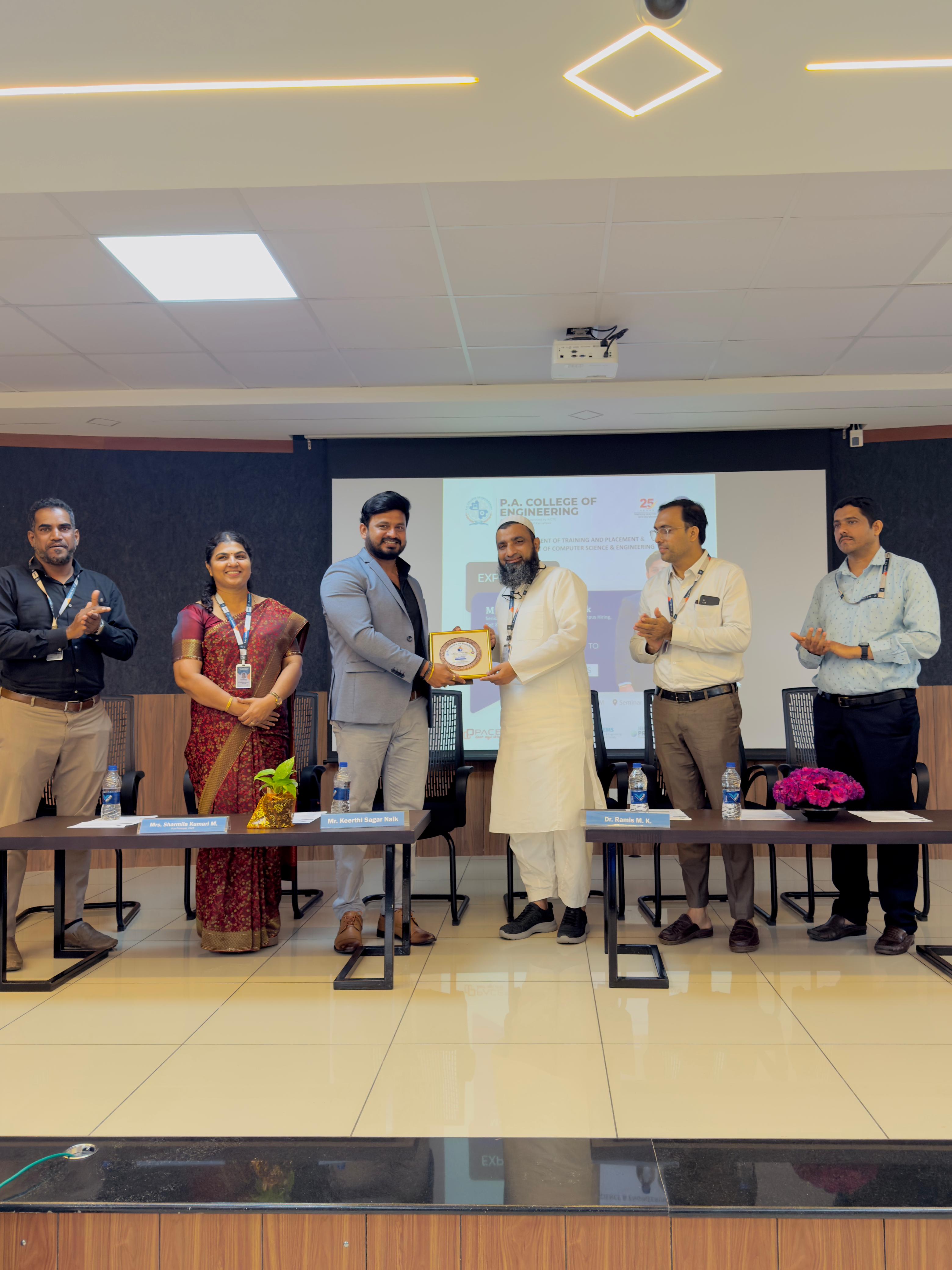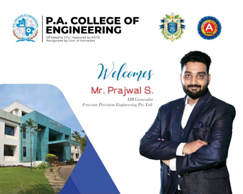 On 08th October 2025, Mr. Prajwal S., HR Generalist at Foxconn Precision Engineering Pvt. Ltd., visited P.A. College of Engineering (PACE) as part of the onboarding and evaluation process for campus recruitment. The objective was to assess the potential of final year Engineering and MBA students and explore collaboration for future hiring. The visit was organized by the Training and Placement Department, coordinated by Prof. Mohammad Hussain K, TPO, under the valuable guidance of Principal Dr. Ramis M.K.