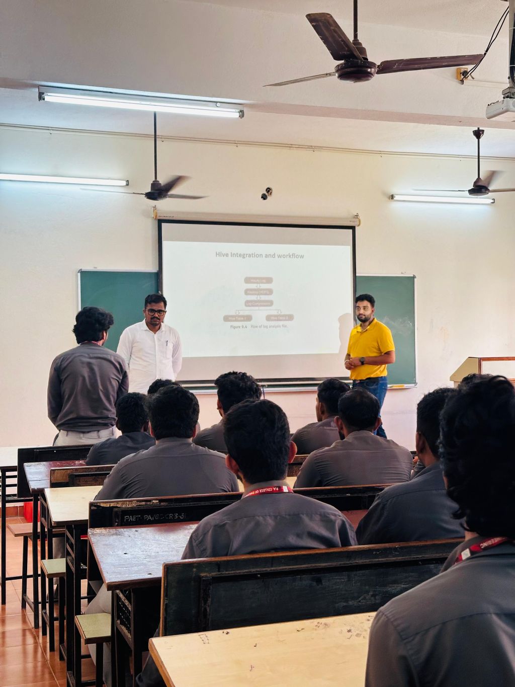 Following this, Mr. Prajwal, accompanied by Mr. Shreyas from Foxconn, visited the classrooms of final year Engineering and MBA students. The sessions were insightful and interactive, covering topics such as industry expectations, job roles at Foxconn, and preparation tips for corporate careers. Students responded enthusiastically and engaged actively. The classroom visit was efficiently coordinated by Prof. Irshad K, Assistant Professor, CSMR, ensuring smooth execution.