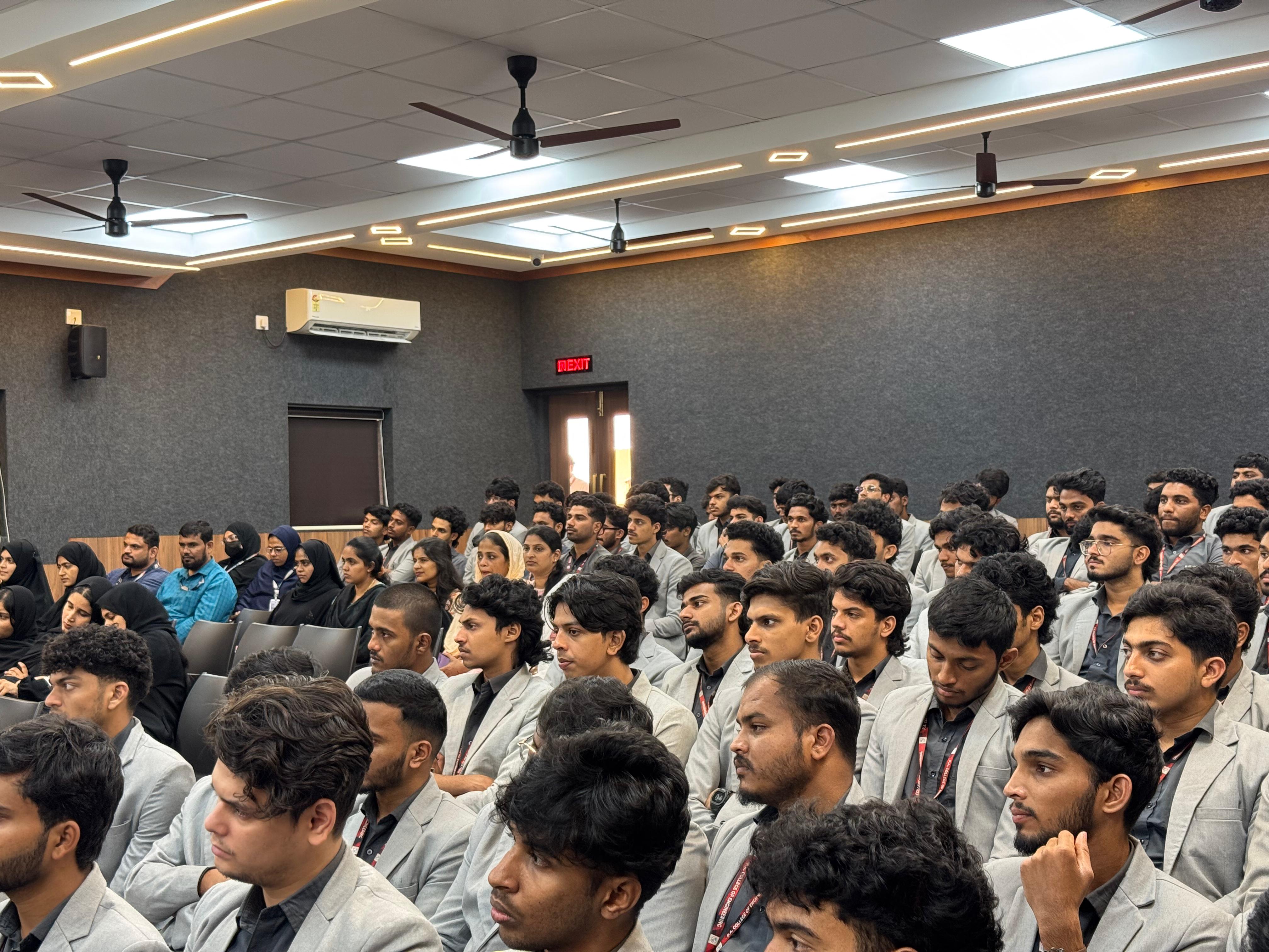 The program witnessed the participation of over 100 students. It began with a prayer by Abdulla (Civil Engineering), followed by a welcome address from Prof. Mohammad Hussain, Training and Placement Officer. The session was compered by Aysha Zaheea (MBA Department) and concluded with a vote of thanks delivered by Prof. Safa Sanah C, Assistant Professor, Civil Engineering.