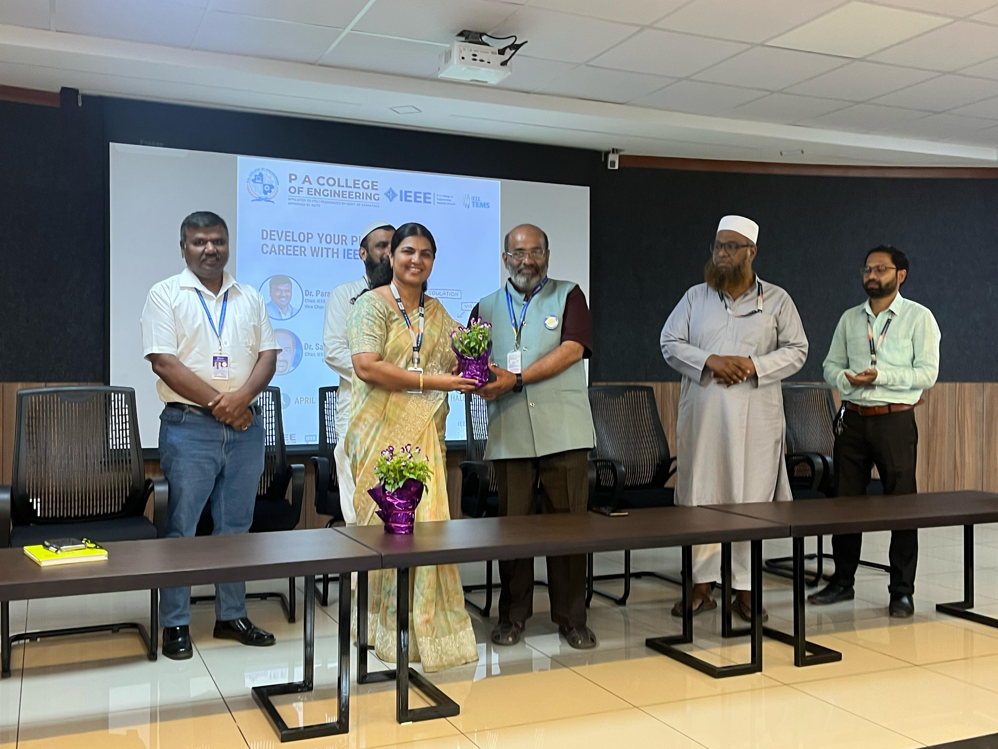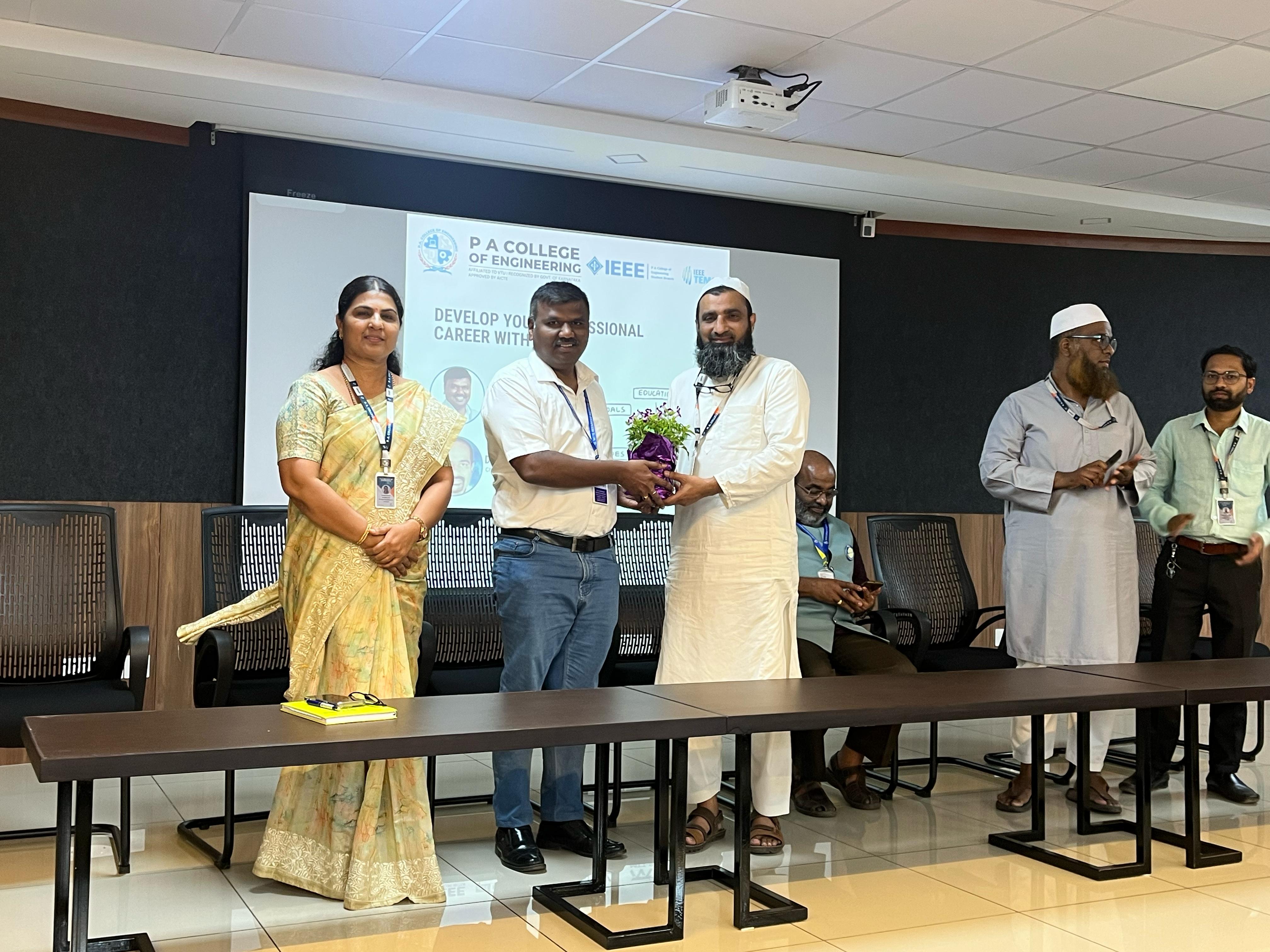 At the end of the session, Dr. Ramis M. K., Principal, PACE presented a memento to special guest Mr. Muzammil Ahmad. Dr. Sharmila Kumari, Vice Principal and HOD-CS dept., Prof. Moahmmed Hafeez and IEEE Coordinator Prof. Mohammed Zakir were present.
