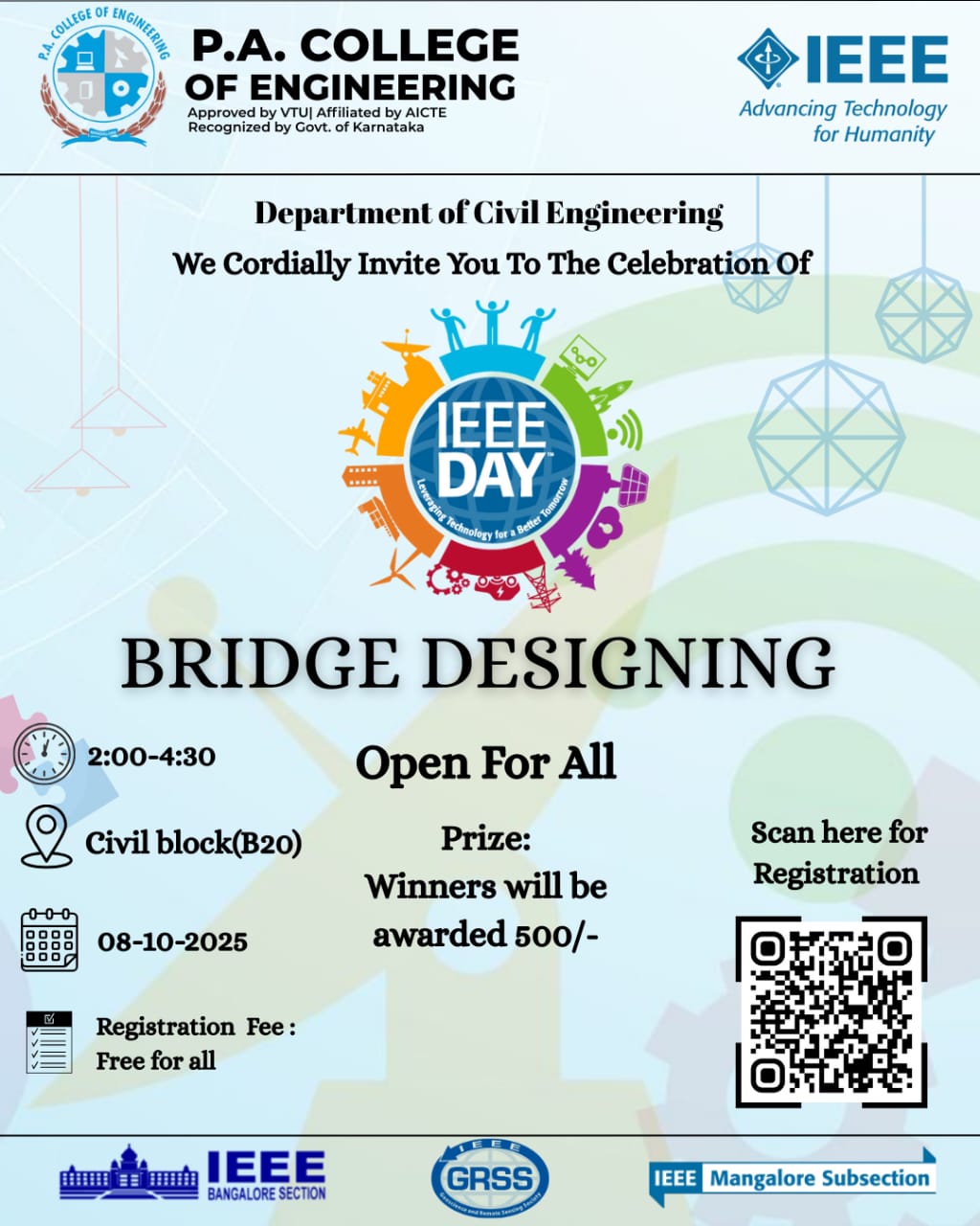 The Institution of Engineers India (IEI) Students’ Chapter in the department of Civil Engineering P.A. College of Engineering (PACE), Mangaluru has been recognised and approved by the Institutions of Engineers (India), Kolkata, since June 2021 by enrolling 50 students of the departments. The IEI students’ chapter conducts various technical events to the students to upskill their technical knowledge in Civil Engineering.