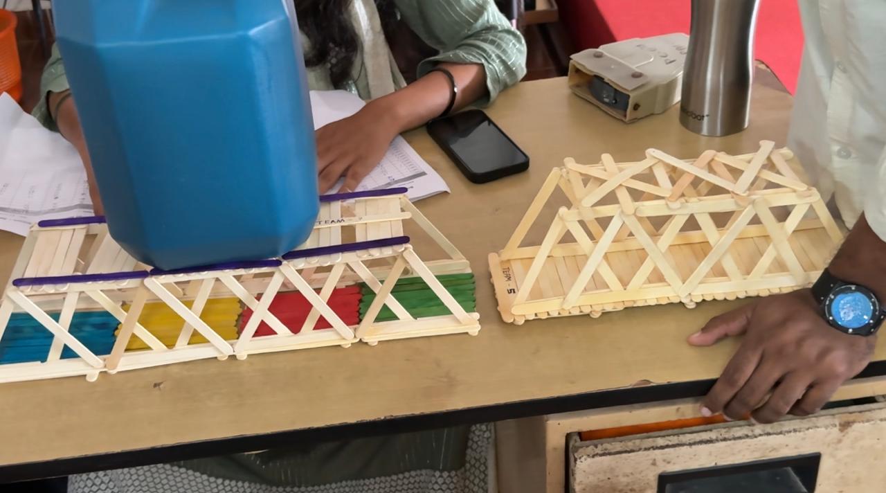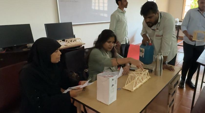 Based on the evaluation, two best projects were identified: 1) Rooftop Rain Water Harvesting at P.A. Haji Memorial Physiotherapy Clinic by Ms. Absana and team; and 2) Strength Parameters of Concrete Made Using Bio-Cemen by Mr. Athmadev and team. The external evaluator interacted with all the batches of students throughout their presentation and appreciated them.